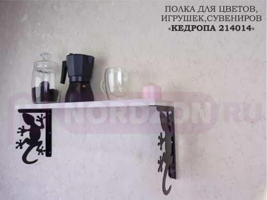 Заказать звонокПолка для цветов, игрушек,сувениров "КЕДРОПА-214014 гекон" размер 15х60х24 см, сосна выбеленая