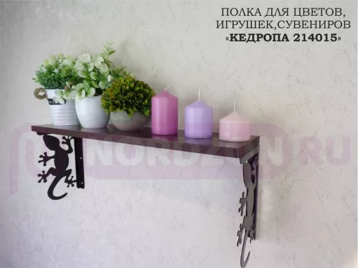 Заказать звонокПолка для цветов, игрушек,сувениров "КЕДРОПА-214015 гекон" размер 15х60х24 см, венге