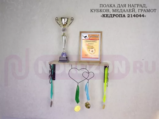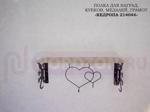 Заказать звонокПолка для наград, кубков, медалей, грамот "КЕДРОПА-214044 гекон" размер 15х60х24 см, дуб с сердцем