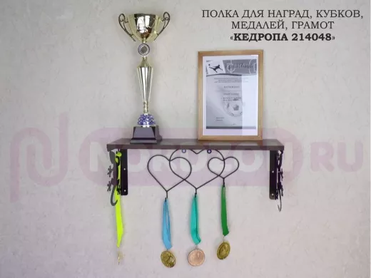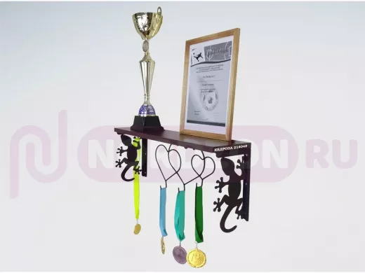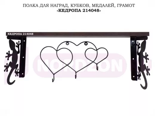 Заказать звонокПолка для наград, кубков, медалей, грамот "КЕДРОПА-214048 гекон"размер 15х60х24 см, венге с сердцами