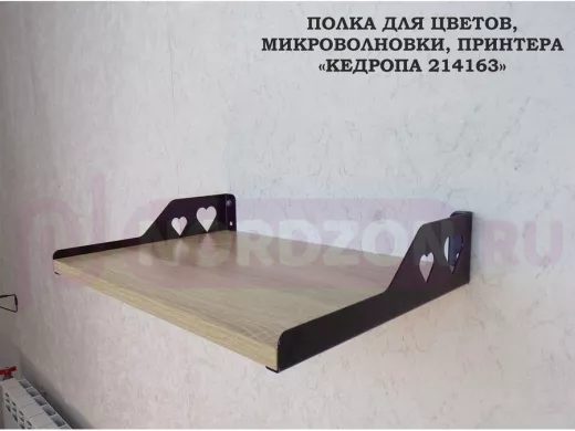 Заказать звонокПолка для цветов, микроволновки, принтера "КЕДРОПА-214163" размер 40х30х10 см, дуб сонома, сердце