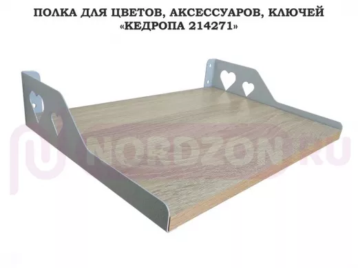 Заказать звонокПолка для цветов, аксессуаров, ключей "КЕДРОПА-214271" размер 40х30 см, дуб сонома, сердце