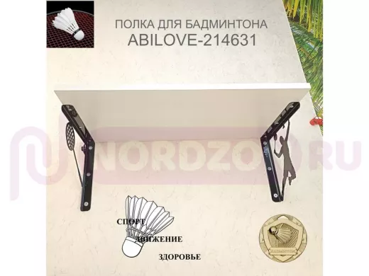 Заказать звонокПолка спортивная "БАДМИНТОН ABILOVE-214631" для кубков, медальница, сосна выбеленная, размер 30х60см