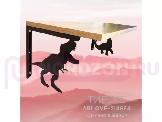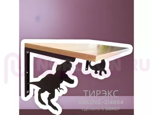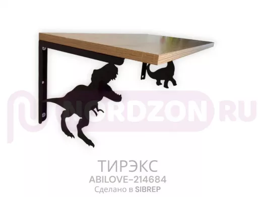 Заказать звонокПолка с динозаврами "ТИРЭКС ABILOVE-214684" для конструкторов, машинок, дуб сонома, 30х60см