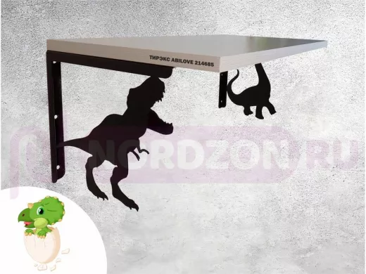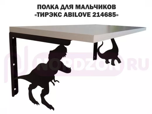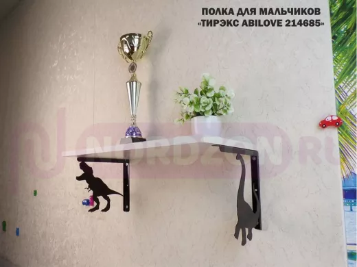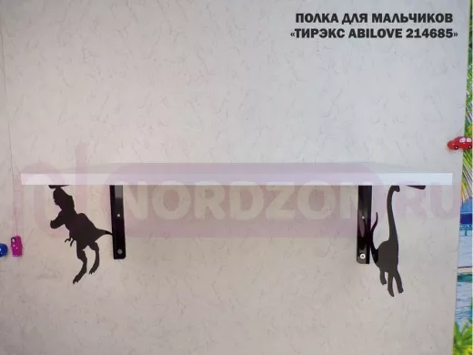 Заказать звонокПолка с динозаврами "ТИРЭКС ABILOVE-214685" для конструкторов, машинок, сосна выбеленная, 30х60см