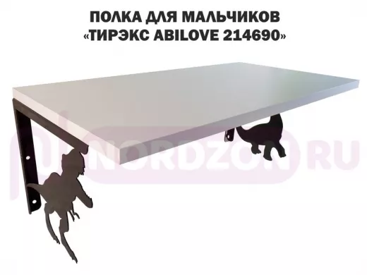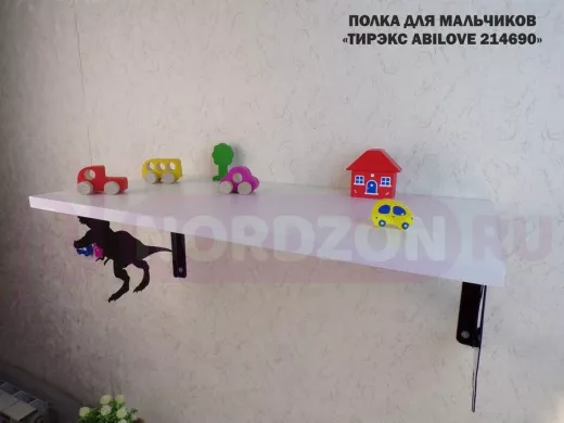 Заказать звонокПолка с динозаврами "ТИРЭКС ABILOVE-214690" для конструкторов, машинок, белый, 30х60см