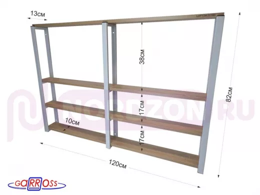Заказать звонокПолка для вина и бокалов, высота 82см, 4 уровня, размер полки 10х120см, серая "LOFTOM 211585" дуб