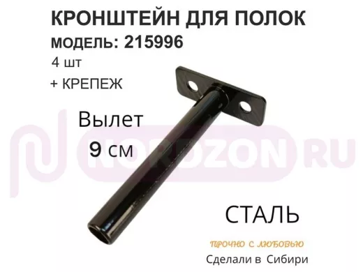 Заказать звонокКронштейн для скрытого крепления полок, 12х90мм, черный, в наборе 4шт "SVORKAMAX-215996" без полки