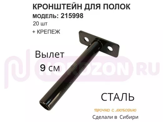 Заказать звонокКронштейн для скрытого крепления полок, 12х90мм, черный, в наборе 20шт "SVORKAMAX-215998" без полки
