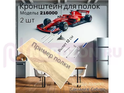 Кронштейн для скрытого крепления полок,12х120мм, серый, в наборе 2шт "SVORKAMAX-216000" без полки