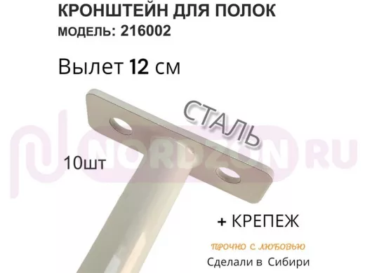 Кронштейн для скрытого крепления полок,12х120мм, серый, в наборе 10шт "SVORKAMAX-216002" без полки