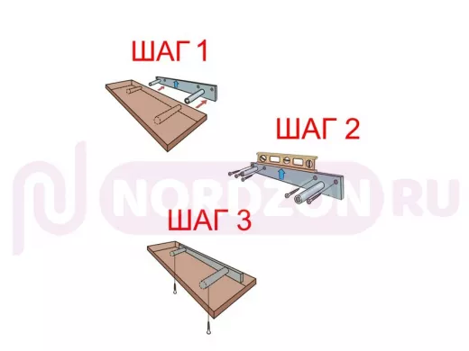 - На кронштейны плотно надевается полка, в торце которой проделаны отверстия диаметром 12 мм.