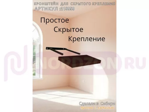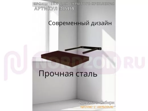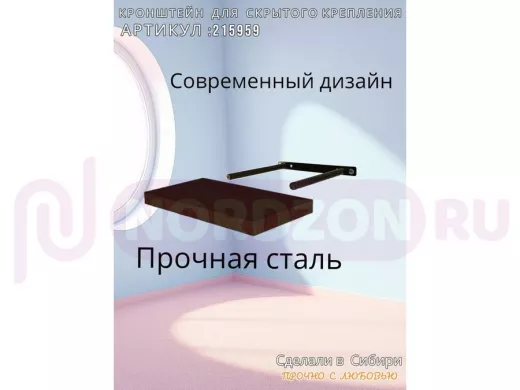 Заказать звонокКронштейн для скрытого крепления полок, 2х15см, черный, в наборе 1шт "SVORKAMAX-215959" ширина 20см
