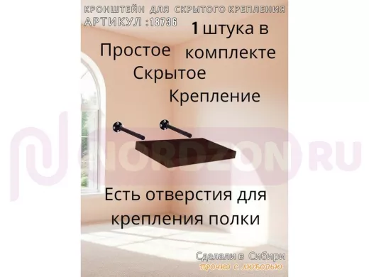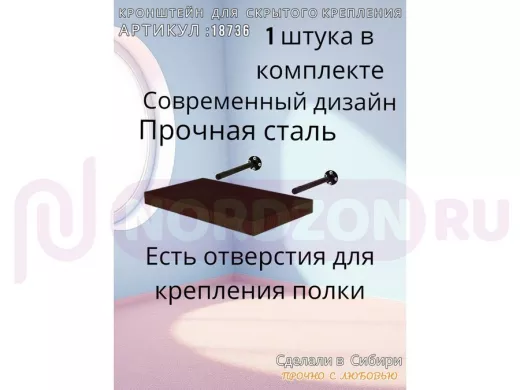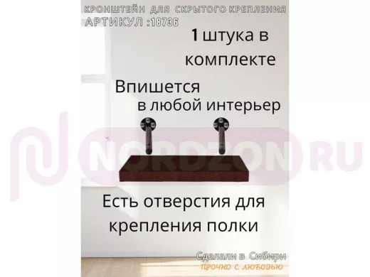 - Кронштейн предназначен для скрытого крепления полок, изготовленных из различных материалов: МДФ, ДСП, дерево, пластик.