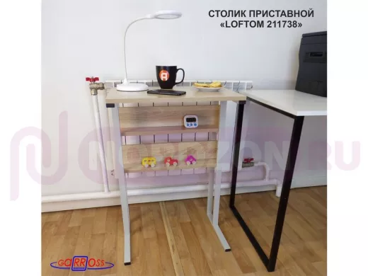 Заказать звонокСтолик приставной, 79 см, серый "LOFTOM 211738" прикроватный стол журнальный с двумя полками, дуб