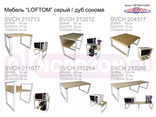 Заказать звонокСтолик приставной, серый, 55см "LOFTOM 212958" прикроватный стол журнальный с полкой, дуб