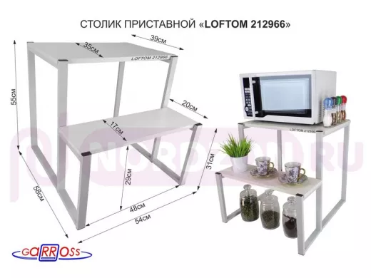 - Универсальная подставка для бытовой техники (микровоновой печи, кофемашины, тостера, электрического чайника и др) позволяет эффективно использовать место на столе.