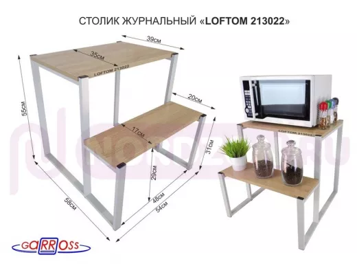 - Каркас изделия выполнен из высокопрочного металла. Полка изготовлена из ламинированного ДСП