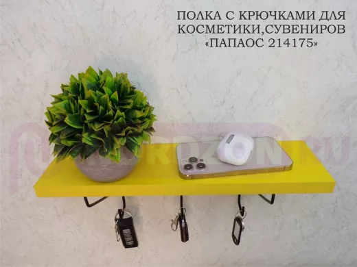 Заказать звонокКлючница, полка с крючками в прихожую 40х10 см, высота 9 см, черный "ПАПАОС 214175" желтый