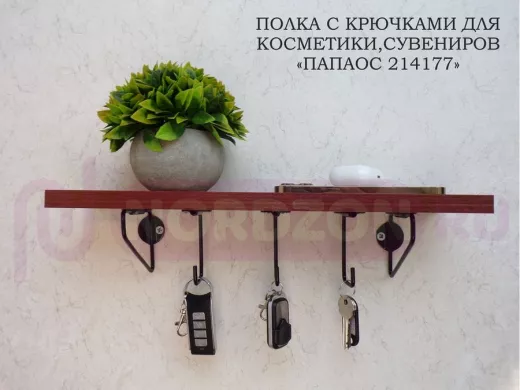 Заказать звонокКлючница, полка с крючками в прихожую 40х10 см, высота 9 см, черный "ПАПАОС 214177" орех