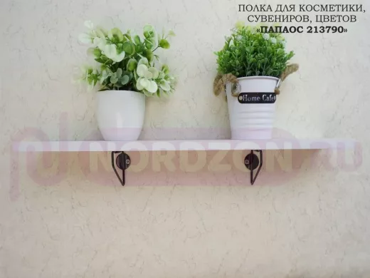 - Стильная полка в лофт-стиле. Простая конструкция изделия, позволяет добиться высокой надежности, а её минималистичный дизайн впишется абсолютно в любой интерьер. Полка идеально подойдет для косметики, сувениров, цветов и декоративных мелочей.