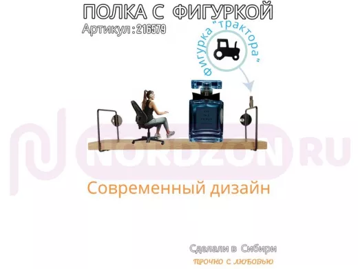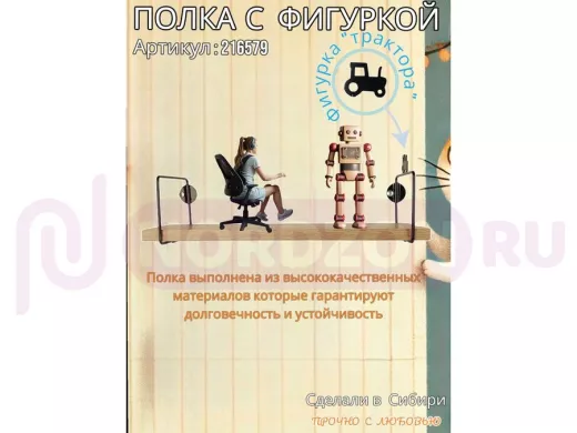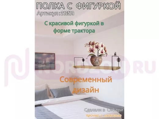 Заказать звонокПолка с фигуркой трактора "ABILOVE-216579" размер 10х40см ,черный ,дуб сонома