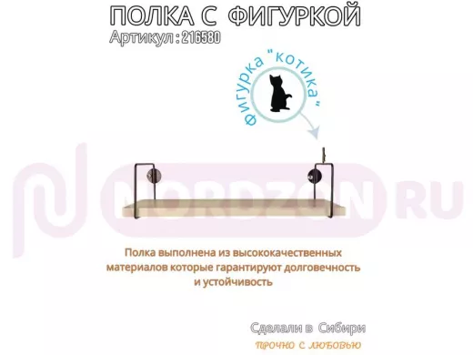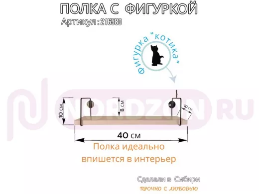 Заказать звонокПолка с фигуркой котика "ABILOVE-216580" размер 10х40см ,черный ,сосна выбеленная