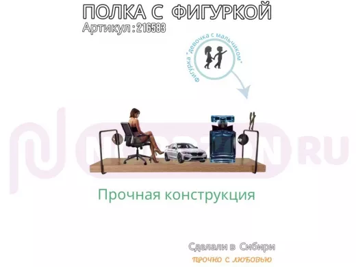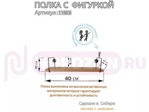 Заказать звонокПолка с фигуркой девочки с мальчиком "ABILOVE-216583" размер 10х40см ,черный ,дуб сонома