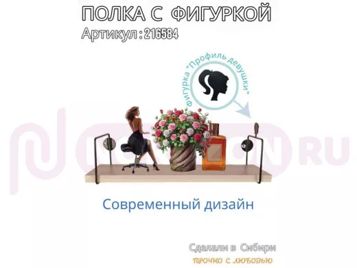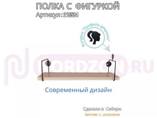 Заказать звонокПолка с фигуркой прически девушки "ABILOVE-216584" размер 10х40см ,черный ,сосна выбеленная