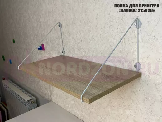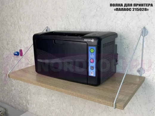 Полка надежно крепится к стене при помощи анкеров или шурупов с дюбелями, на ней можно разместить принтер, сканер, МФУ и многое другое