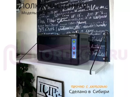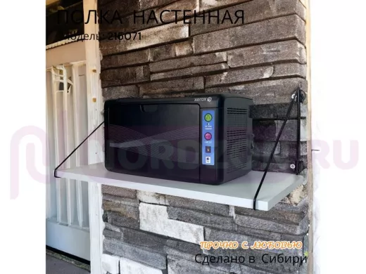 - Полка надежно крепится к стене при помощи анкеров или шурупов с дюбелями, на ней можно разместить принтер, бумагу и многое другое