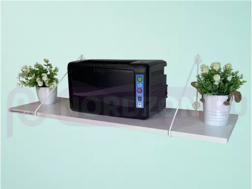 - Полка надежно крепится к стене при помощи анкеров или шурупов с дюбелями, на ней можно разместить принтер, бумагу