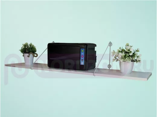 - Полка надежно крепится к стене при помощи анкеров или шурупов с дюбелями, на ней можно разместить принтер, бумагу