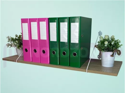 - Полка надежно крепится к стене при помощи анкеров или шурупов с дюбелями, на ней можно разместить папки, документы