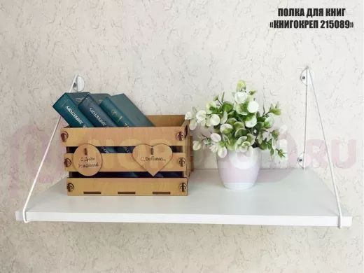 Заказать звонокПолка для книг "КНИГОКРЕП 215089" высота 26 см размер 60х30 см белый и белый шагрень