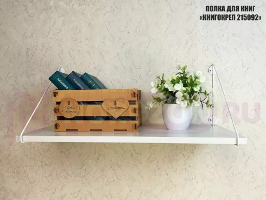 Заказать звонокПолка для книг "КНИГОКРЕП 215092" высота 26 см размер 60х30 см белый и сосна выбеленная
