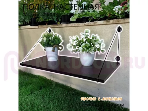 Настенная подвесная полка для цветов и различных мелочей имеет лаконичный и стильный дизайн, идеально подойдет для офисного и домашнего интерьера, отлично будет смотреться в любой комнате дома или на даче.
