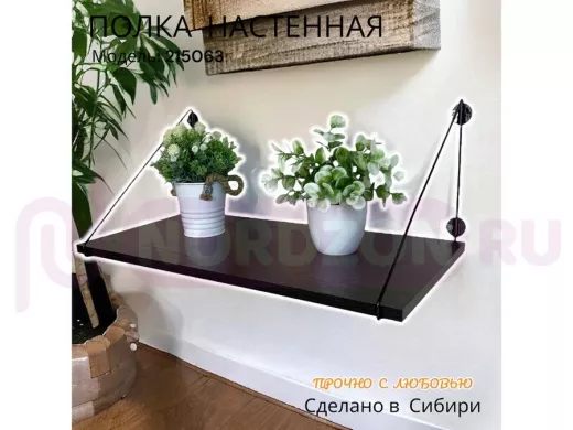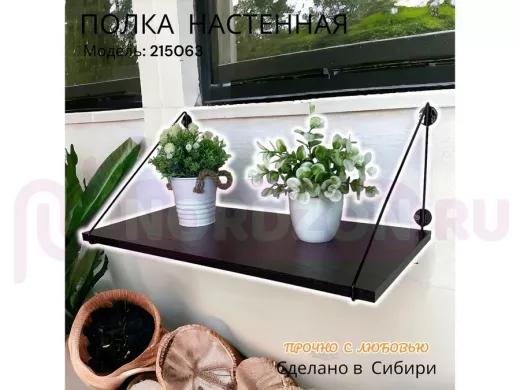 Полка выдержит тяжелые цветочные горшки с растениями, фоторамки, книги, сувениры и много другое.