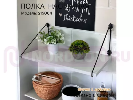 Полка выдержит тяжелые цветочные горшки с растениями, фоторамки, книги, сувениры и много другое.