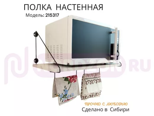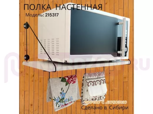 Заказать звонокПолка для микроволновки "ПАПАОС 215317" размер 60х30 см черный и сосна выбеленная с держателями