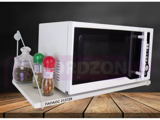- Полки надежно крепятся к стене при помощи анкеров или шурупов с дюбелями, на них можно разместить микроволнрвую печь, кухонную технику, посуду, специи, сувениры, цветы, фотографии и многое другое