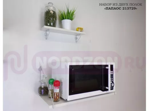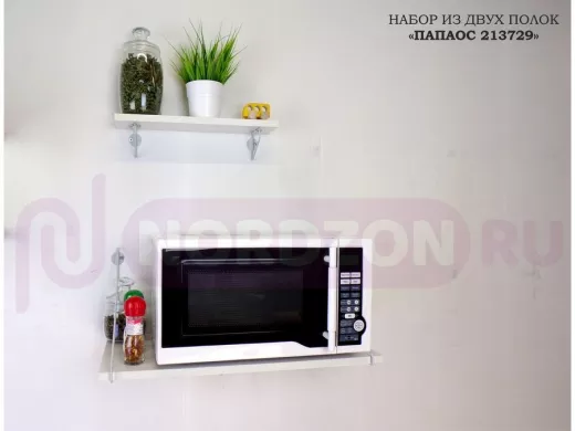 - Комплект из двух настенных полок имеет лаконичный и стильный дизайн, идеально подойдет для любого интерьера и существенно сэкономит место на кухне