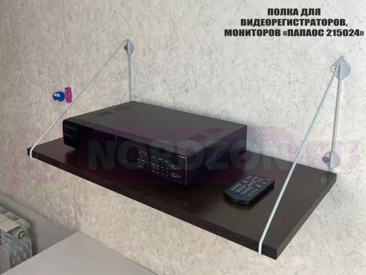 Полка надежно крепится к стене при помощи анкеров или шурупов с дюбелями, на ней можно разместить видеорегистратор, монитор и многое другое