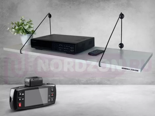 - Полка надежно крепится к стене при помощи анкеров или шурупов с дюбелями, на ней можно разместить видеорегистратор, монирот