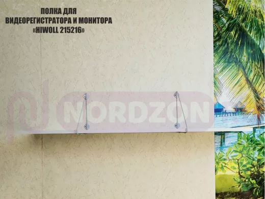 - Полка надежно крепится к стене при помощи анкеров или шурупов с дюбелями, на ней можно разместить видеорегистратор, монирот