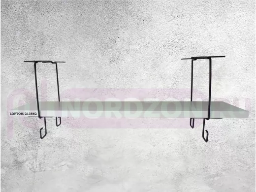 Полка подвесная под шкаф или стол черная, 60х15 см, сосна "LOFTOM 213562" высота 15см, с крючками