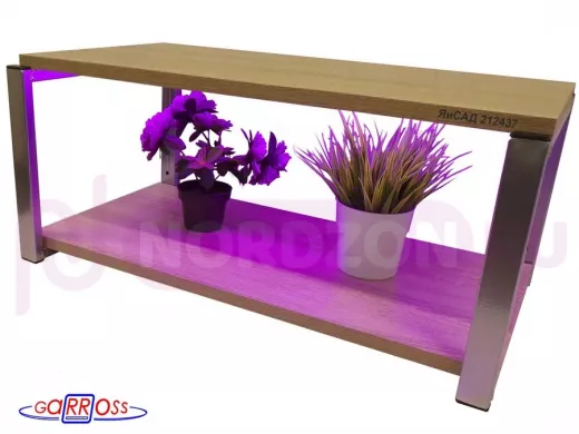 Заказать звонокПолка для цветов и рассады с фитоподсветкой, высота 25см, серебристый "ЯиСАД 212437" 60х30, дуб