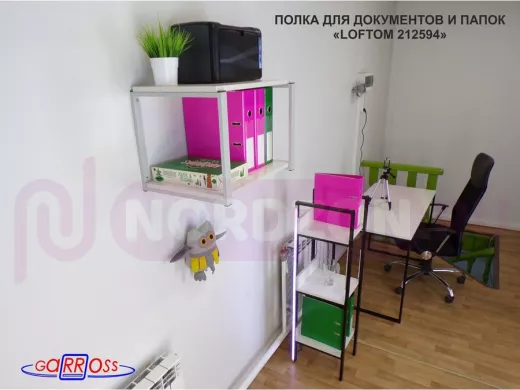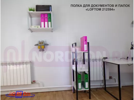 Заказать звонокПолка для папок и документов, высота 38см серый "LOFTOM 212594"две полки 35х54см, сосна выбеленная