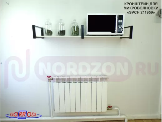 Заказать звонокКронштейн для микроволновки, 15см черный, 1 полка 30х120см "SVCH 211959" под микровол.печь,сосна