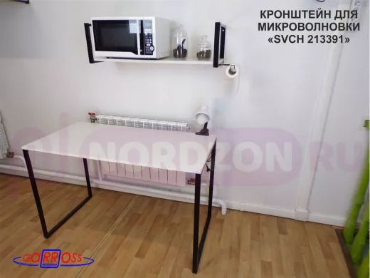 Заказать звонокКронштейн для СВЧ, 25см черный, 90х30см, держатель полотенец правая сторон "ПолкаКрепка-213391"сосна